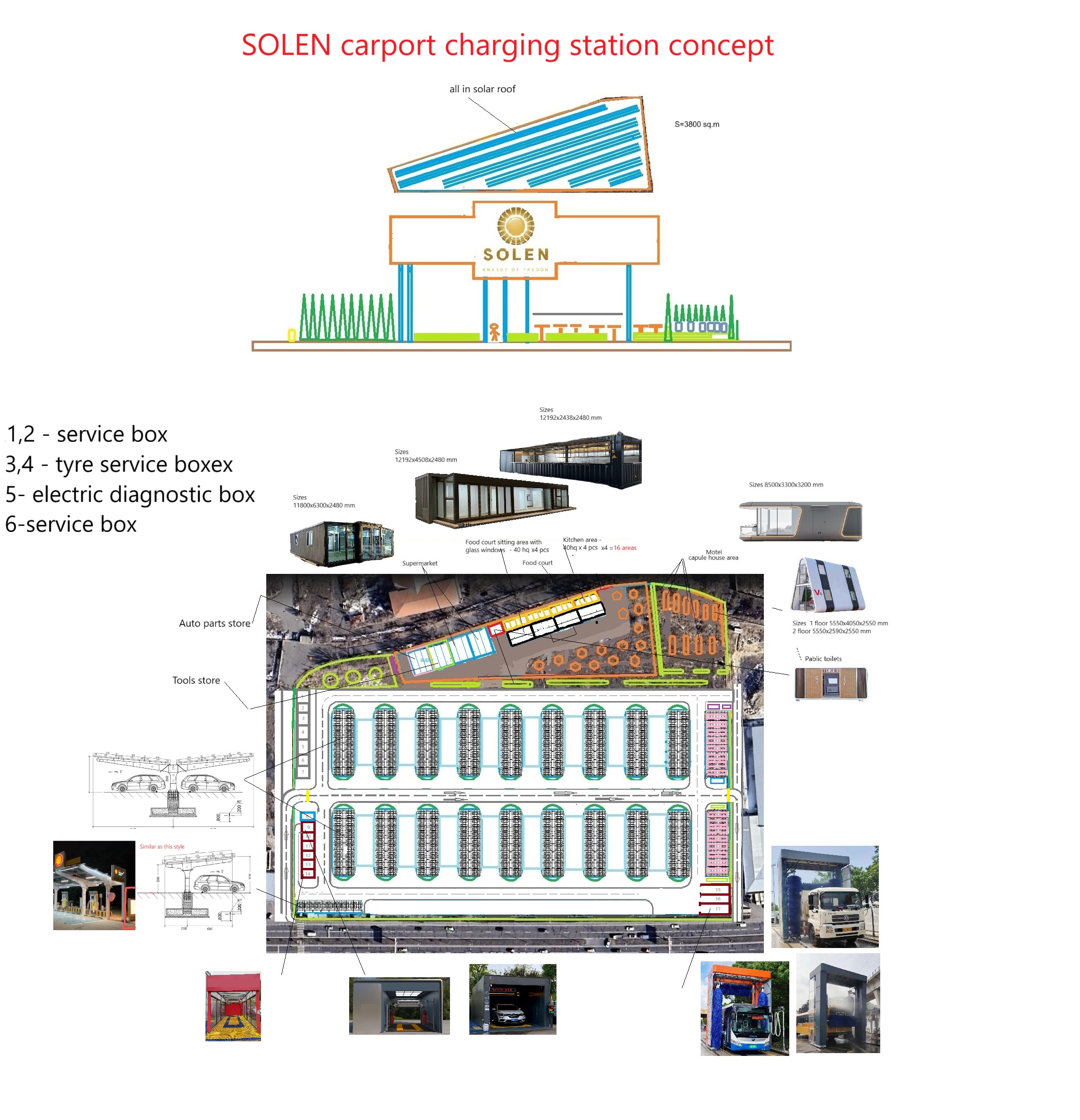 Проект решает как важный вопрос быстрой зарядки всех тпов автомобилей без очередей до 15 минут так и отдыха , питания , диагностики , парковки и мойки автомобилей